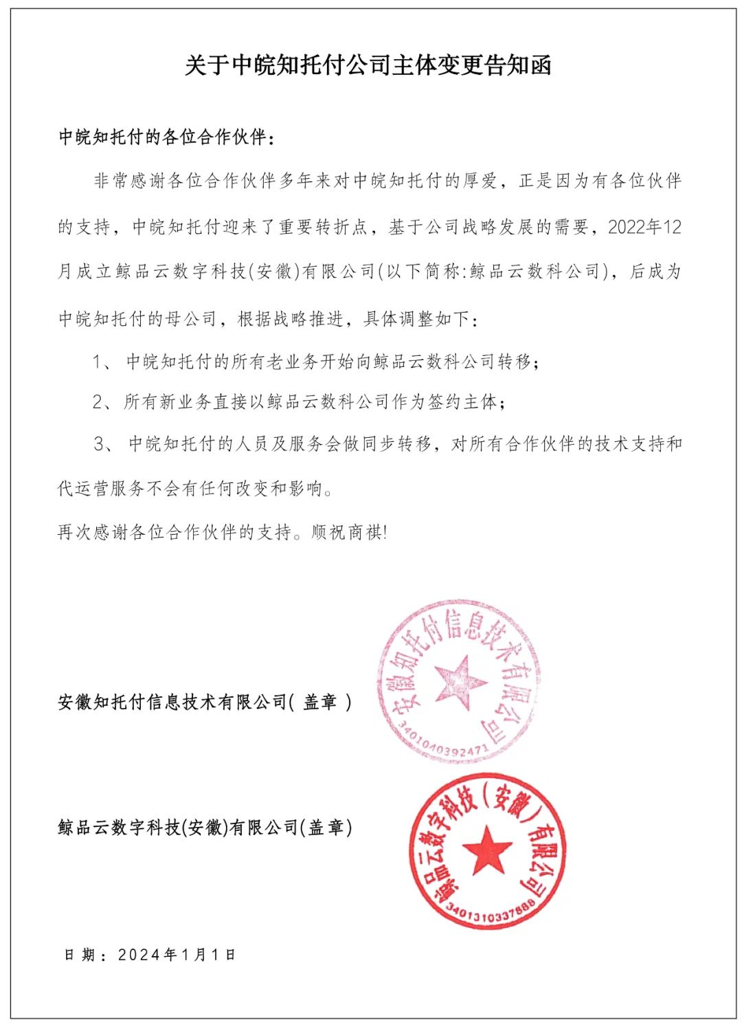中皖知托付公司經(jīng)營主體變更為鯨品云數(shù)科