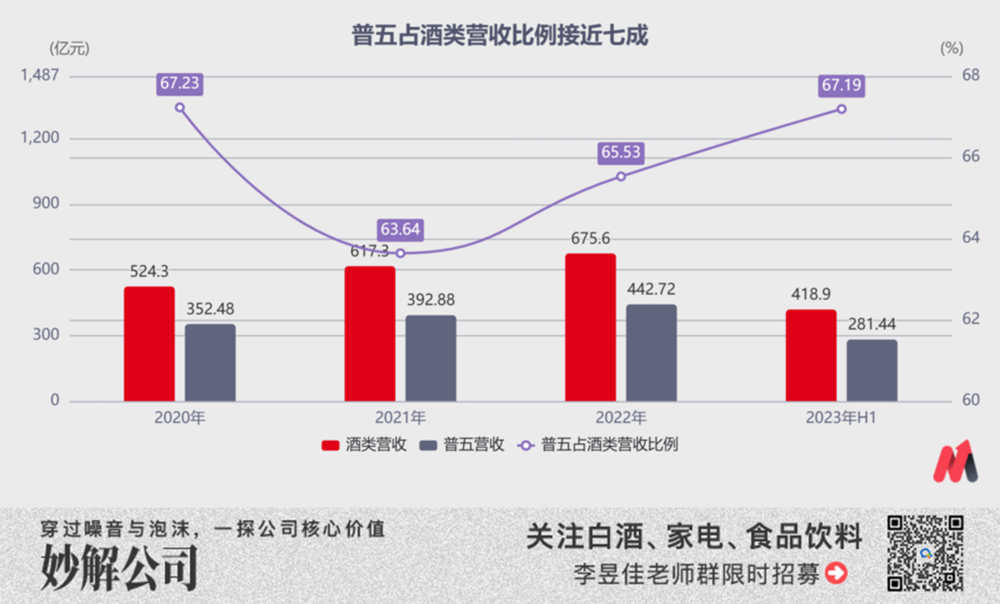 妙投經(jīng)研究發(fā)現(xiàn),公司目前營收的增長仍主要靠普五,而非其他子品牌。這一點(diǎn)短期并不會(huì)發(fā)生太大變化。