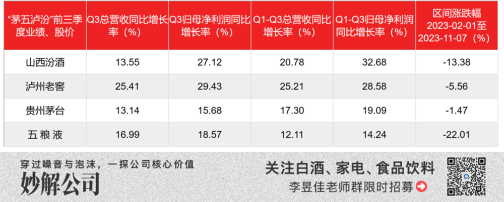 10月27日晚,五糧液發(fā)布了三季度報(bào),在二季度嚴(yán)格控制出貨量消化渠道庫存、渠道回款進(jìn)度慢于同期的輔助之下,三季度增速?zèng)]再像二季度一樣墊底,總營收同比增長16.99%,歸母凈利潤同比增長18.52%,增速優(yōu)于貴州茅臺(tái),但不及瀘州老窖。