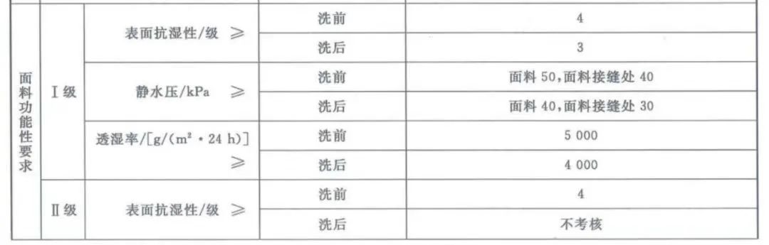 目前,沖鋒衣對應(yīng)的國家標準為GB/T 32614-2016《戶外運動服裝沖鋒衣》,標準針對沖鋒衣的面料功能也有詳細的要求,包括抗?jié)裥、靜水壓、透濕率等體現(xiàn)產(chǎn)品防風透濕性功能的參數(shù)。