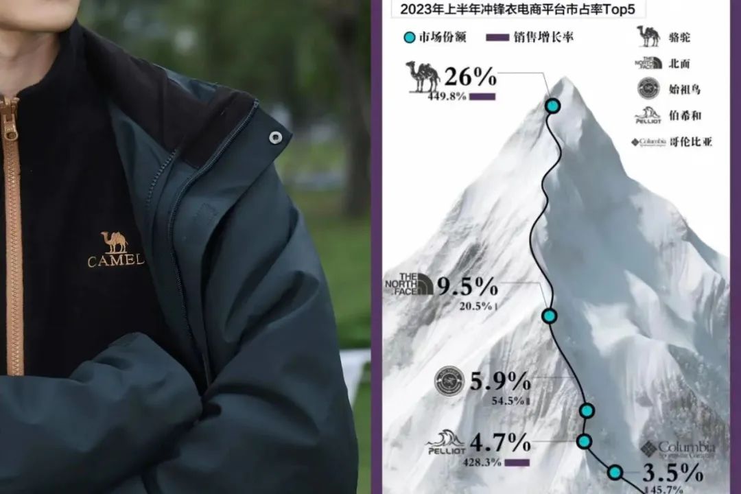 以國產(chǎn)品牌駱駝Camel為例,在踩中沖鋒衣的風口后,人氣和品牌價值實現(xiàn)了過去不敢想象的雙騰飛?恐鴽_鋒衣,駱駝的銷量不僅超越了老牌霸主北面,還成功做到了“南方街頭的駱駝比沙漠都多!