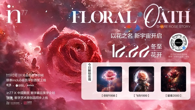 同時,由in77與中國美院聯(lián)名創(chuàng)作的「玫瑰」藝術(shù)數(shù)字原創(chuàng)同步上線,啟動與銀泰會員在銀泰元宇宙數(shù)字空間內(nèi)的首次對話。上線之后,已有超萬朵數(shù)字玫瑰被成功收藏。