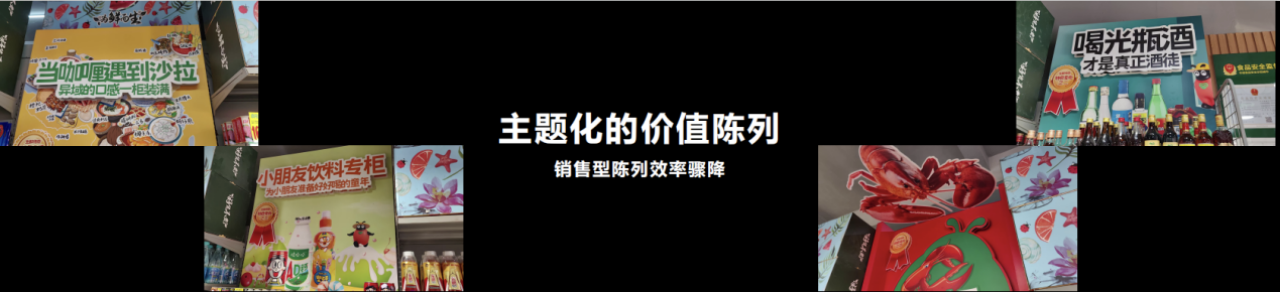 如今,很多企業(yè)將上一年的產(chǎn)品大量進(jìn)回去,用傳統(tǒng)的方式擺放到貨架上,這當(dāng)然是不行的。同時我思考著我們自己的小店。例如,我們生鮮傳奇的飲料柜只有3組,我們該如何使其具有特色呢?同樣的調(diào)料和酒水,一個大賣場有100多節(jié)柜臺,我怎么能與他競爭呢?后來我開始思考,我們需要打造自己的主題,即使是相同的產(chǎn)品,不同的擺放方式也會給顧客留下不同的印象。比如,我們?yōu)樾∨笥言O(shè)置了一節(jié)專屬柜臺,吸引他們的目光,我們增加了一組宴會飲料,唯一一組是正常的飲料,銷售情況由此開始翻轉(zhuǎn)。