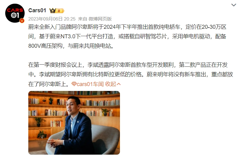 蔚來汽車總裁秦力洪此前表示,第二品牌“阿爾卑斯”和第三品牌“螢火蟲”都是蔚來的內(nèi)部項目代號,并非品牌名字。