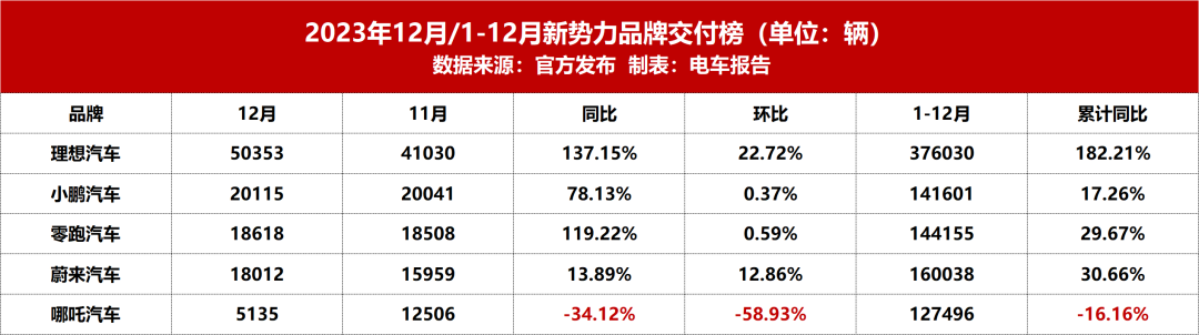 值得一提的是,12月理想汽車交付新車50353輛,創(chuàng)單月交付量新高,這也是其年內(nèi)首次單月交付超5萬輛;此前理想汽車表示挑戰(zhàn)12月交付5萬輛的目標,如今這一目標已實現(xiàn)。
