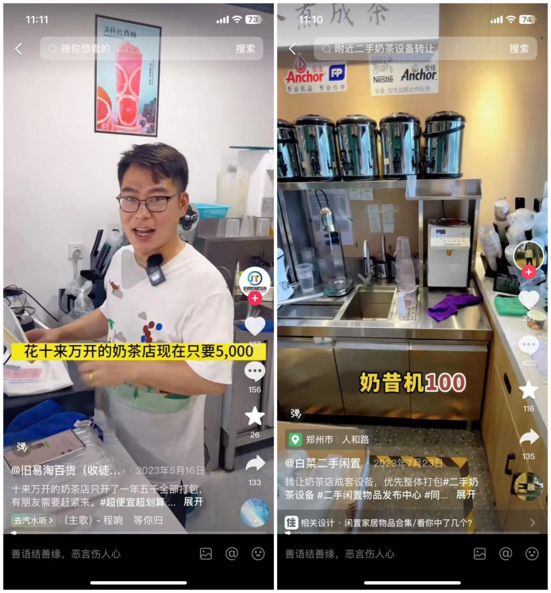 在短視頻平臺上,不少二手設備回收稱,一家奶茶店全套設備對外售價5000元,果糖機、奶昔機價格分別為300元和100元?上攵衷O備回收商在收購這些設備時,壓的價格有多低。
