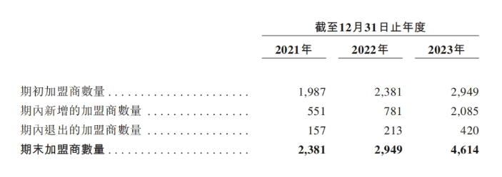 另外古茗在招股書提到,2021年、2022年及2023年12月31日,古茗分別與2,381名、2,949名及4,614名加盟商合作。2023年,加盟商單店經營利潤達到37.6萬元,單店經營利潤率達20.2%。