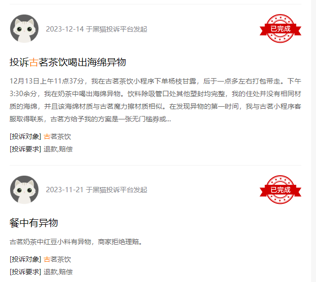但在黑貓投訴上,依然有消費者稱,在古茗內喝出異物,商家拒絕理賠。正如《新巴塞爾資本協(xié)議》中指出的那樣,只要有人員相關的業(yè)務都存在著操作風險。新茶飲行業(yè)為典型的勞動密集型行業(yè),尤其是在加工制售環(huán)節(jié)仍存在大量的員工操作,潛在的食品安全問題只能通過各種管理手段減少,卻無法完全消除。