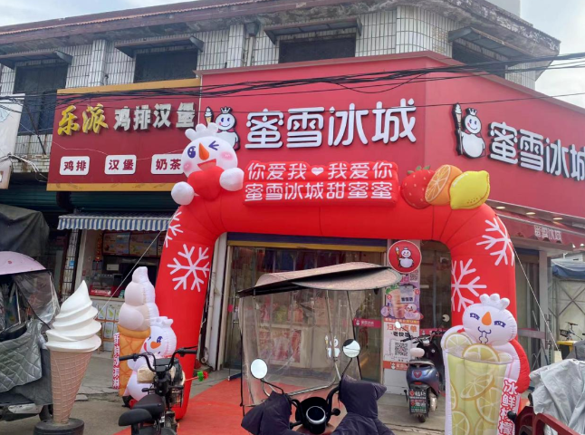 多業(yè)態(tài)共同競爭下,優(yōu)質商圈租金水漲船高。且同一商圈位置下,往往聚焦了大量新茶飲品牌,加盟商之間的競爭激烈程度可想而知。如我們在界首市走訪中就發(fā)現(xiàn),當?shù)氐慕】德飞虡I(yè)街上,同時聚焦了蜜雪冰城、茶百道、古茗、滬上阿姨、霸王茶姬、甜啦啦、COCO等一眾新茶飲品牌,當?shù)叵M者稱這里為“奶茶一條街”。