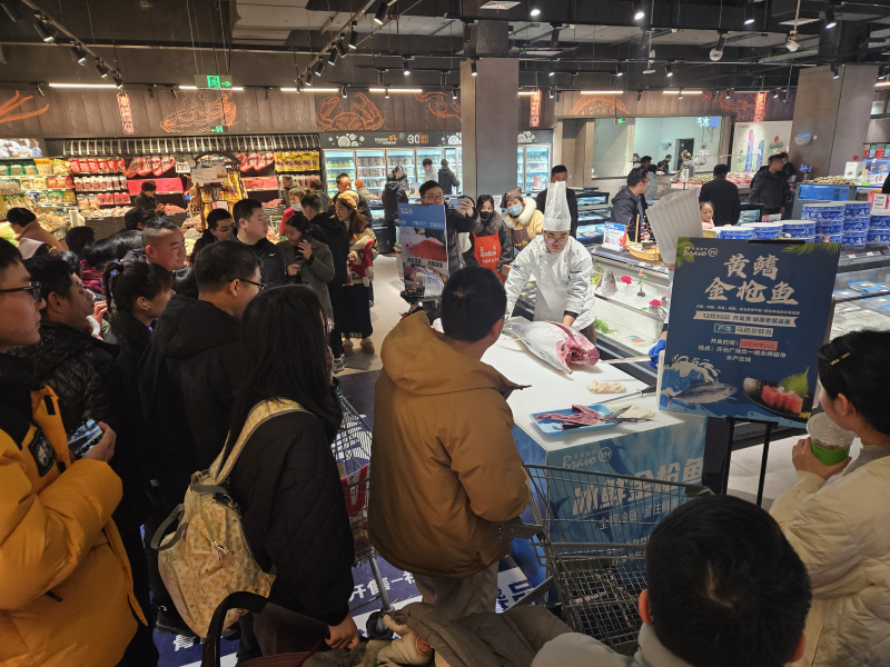 走進(jìn)門店,映入眼簾的是琳瑯滿目的水果區(qū)域,丹東草莓、車?yán)遄、水果果切、果品果汁讓人眼前一亮;水培蔬菜、助農(nóng)產(chǎn)品等新鮮蔬菜滿足顧客日益提升的品質(zhì)生活需求;肉禽板塊氣調(diào)包裝的肉品,火鍋食材等可一站式采購;水產(chǎn)生猛海鮮、三文魚、金槍魚等一應(yīng)俱全,切片、斬塊刺身也是亮點(diǎn)不斷。讓人們縱享美食的同時(shí),吃的放心、舒心、開心。