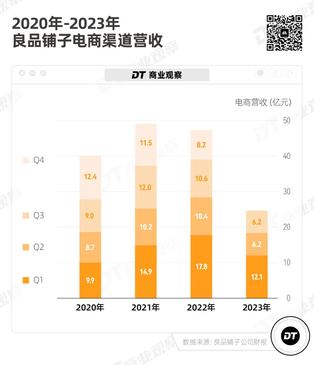 2022年,良品鋪子電商渠道營收46.98億元,同比下降3.3%。而到了2023年,電商的失速仍在繼續(xù)。