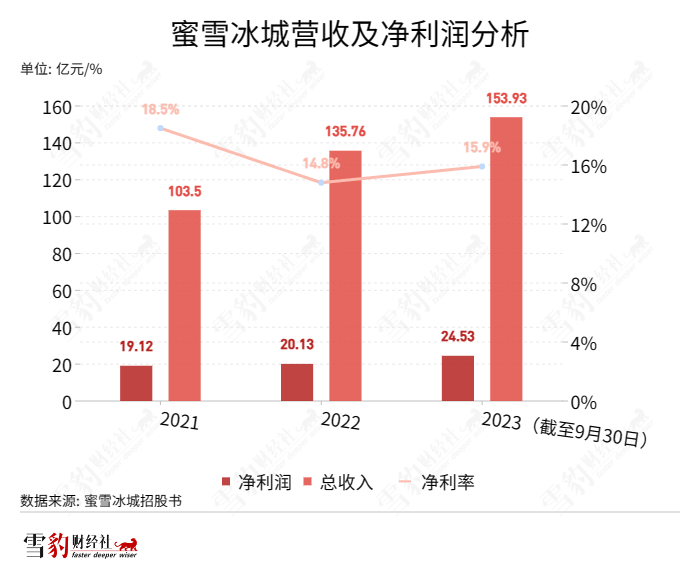 招股書顯示,兩家公司已經(jīng)成為了國(guó)內(nèi)規(guī)模排名第一、第二的茶飲品牌。截至2023年9月,蜜雪冰城擁有超過3.6萬家店鋪,GMV 370億元,年收入154億元。2023年前9個(gè)月,蜜雪冰城共計(jì)賣出59億杯飲品——幾乎相當(dāng)于所有中國(guó)人9個(gè)月內(nèi)每人買過4杯蜜雪冰城。