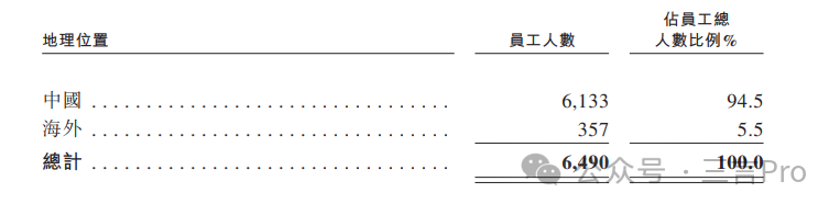 按地理位置劃分,國內員工數(shù)為6133人,占比94.5%;海外員工數(shù)為357人,占比5.5%。