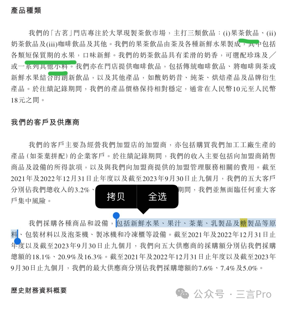 古茗采購的原料包括新鮮水果、果汁、茶葉、乳制品及糖制品等。