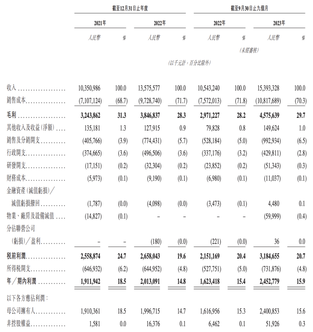 綜合損益表 圖源:蜜雪冰城招股書(shū)