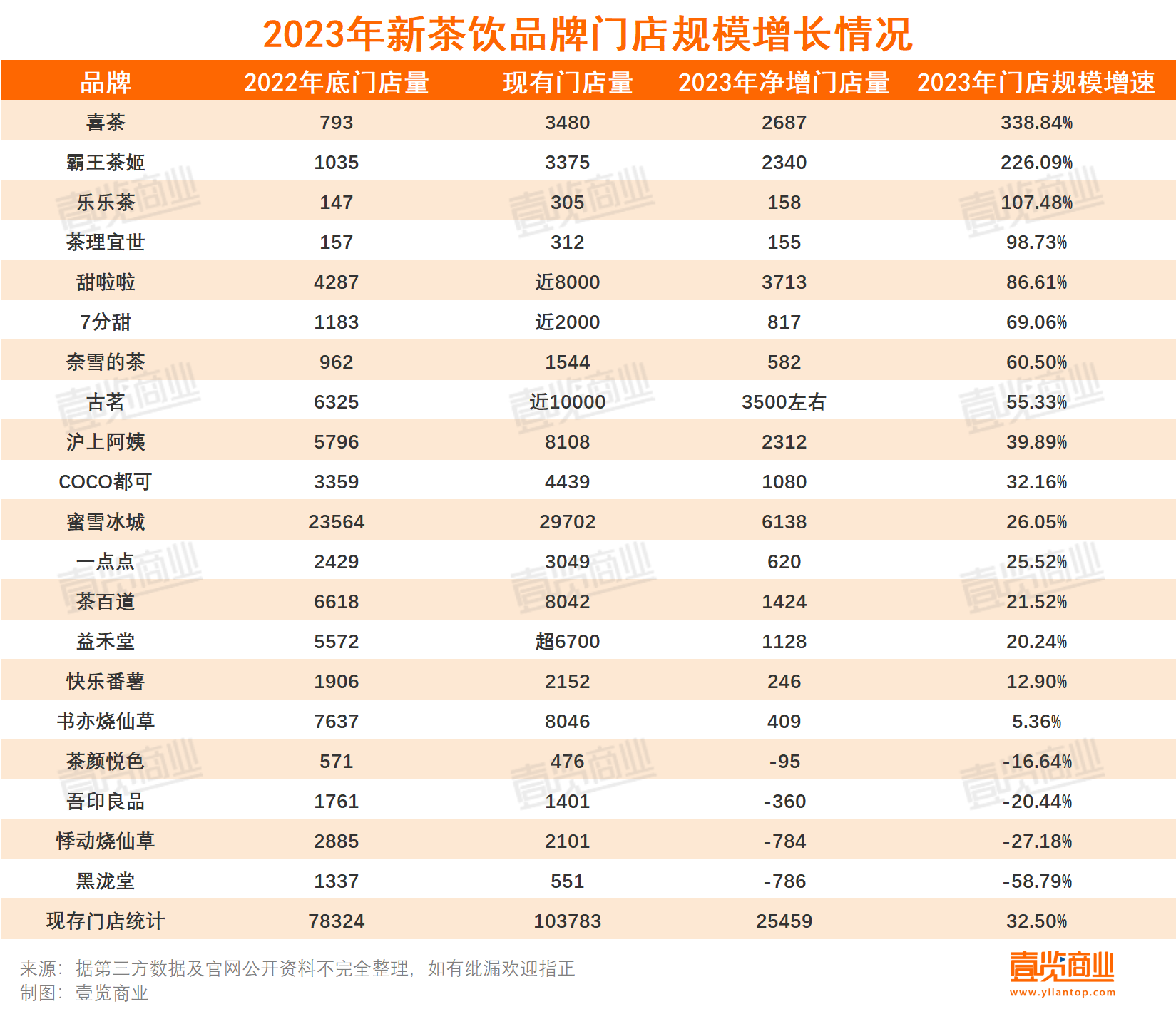 2023新茶飲:喜茶增速最快,門店數(shù)量連翻三倍