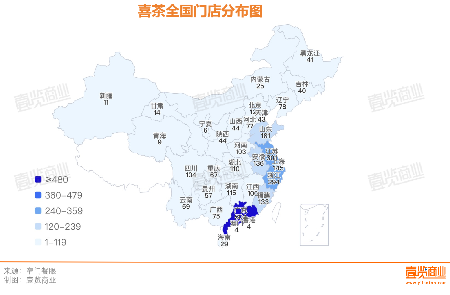 2、近一年來,喜茶在全國加速拓店,通過門店網(wǎng)絡(luò)的快速擴張增加了品牌的聲量。同時,尤其在廣東等區(qū)域已經(jīng)建立了絕對優(yōu)勢。