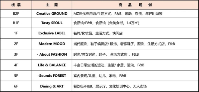 為了實現(xiàn)他們要求的價值,項目擺脫了“百貨是買賣商品的限制零售空間"的形象,設置了以充滿文化的感性、共享最新趨勢等給顧客生活帶來靈感的“總體經驗的空間與主體”的強烈主題,并且從項目名稱開始革新,名稱上刪除了業(yè)態(tài)名稱“百貨(department store)”兩個字 。