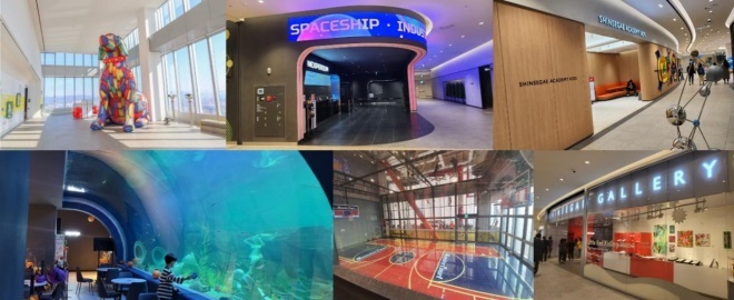 另外,文化設施方面有韓國首次分為成人、兒童專用的“新世界ACADEMI/文化培訓中心(1200㎡)”、7個館共943個座位的忠清圈首進的DOLBY CINEMA “mega box(5200㎡)”、購物和同時會玩游戲的“樂高體驗店’(170㎡)”、高級英語兒童CAFé “Pro Mom Kinder’(200㎡)”、藝術品展示空間“新世界畫廊’(450㎡)”、劇本殺(SHERLOCK HOLMES)、兒童彩畫café(SUNGSU MISULGWAN)兒童PARTY CAFé(S.A.G BALLOONS)、電玩(FUN CITY)、大田市宣傳報道館(KULJAMDOSHI)、兒童英語CLUB(PROMOMKINDER)等零售以外的藝術,體驗,文化,設施及品牌。