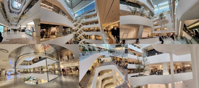 這種強勢的地區(qū)相關主題在商品和空間上表現(xiàn)出來,在開業(yè)(2022.08)第二年,也就是2023年銷售額就達到了8647億韓元(47.6RMB),即使這不是首都圈而是地方百貨。商品規(guī)劃上的特點是一層布局地區(qū)最多奢侈品牌及美妝品牌,二層為了吸引男性顧客布局區(qū)域最多的男性奢侈品牌,除此之外,在塔樓42層還設有新世界百貨直接運營的藝術空間"The Art Space 193 (2800㎡)”、與韓國科學技術院(KAIST) 合作的科學館“新世界Nexperium及LAB(1800㎡)”、大田和忠清道地區(qū)首進的室內體育主題公園"SMOB by SPORTS MONSTER(2200㎡)"、數(shù)碼技術融合的“海洋館“5800㎡)、眺望橫跨大田的甲川的屋頂花園(14900㎡)等。