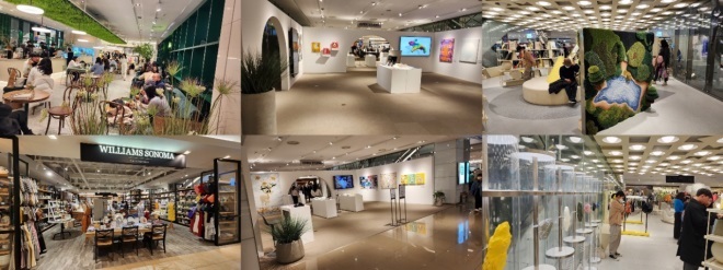 在賣場中間位置的自動扶梯周圍建造了連接至地上3層的中空,在中空1樓建設164㎡的復合文化藝術策展空間"The Square",設置了法國設置藝術作家"Cyril Lancelin"17米高的大型設置作品"Arches Waterfall",之后還將展示多種藝術作品。