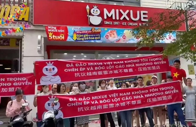 據(jù)紅星新聞報(bào)道,有加盟商表示,一個(gè)四五線城市的商業(yè)步行街上開了約5家蜜雪冰城,彼此之間搶生意。這一問題也不僅出現(xiàn)在國(guó)內(nèi),2023年10月,有越南媒體報(bào)道,蜜雪冰城越南的加盟商對(duì)蜜雪冰城要求降價(jià)進(jìn)行拉橫幅抗議,其中還有加盟商稱不止要和當(dāng)?shù)仄放聘?jìng)爭(zhēng),還要和自己品牌競(jìng)爭(zhēng)——“店面間隔至少有50米,太密集了”。