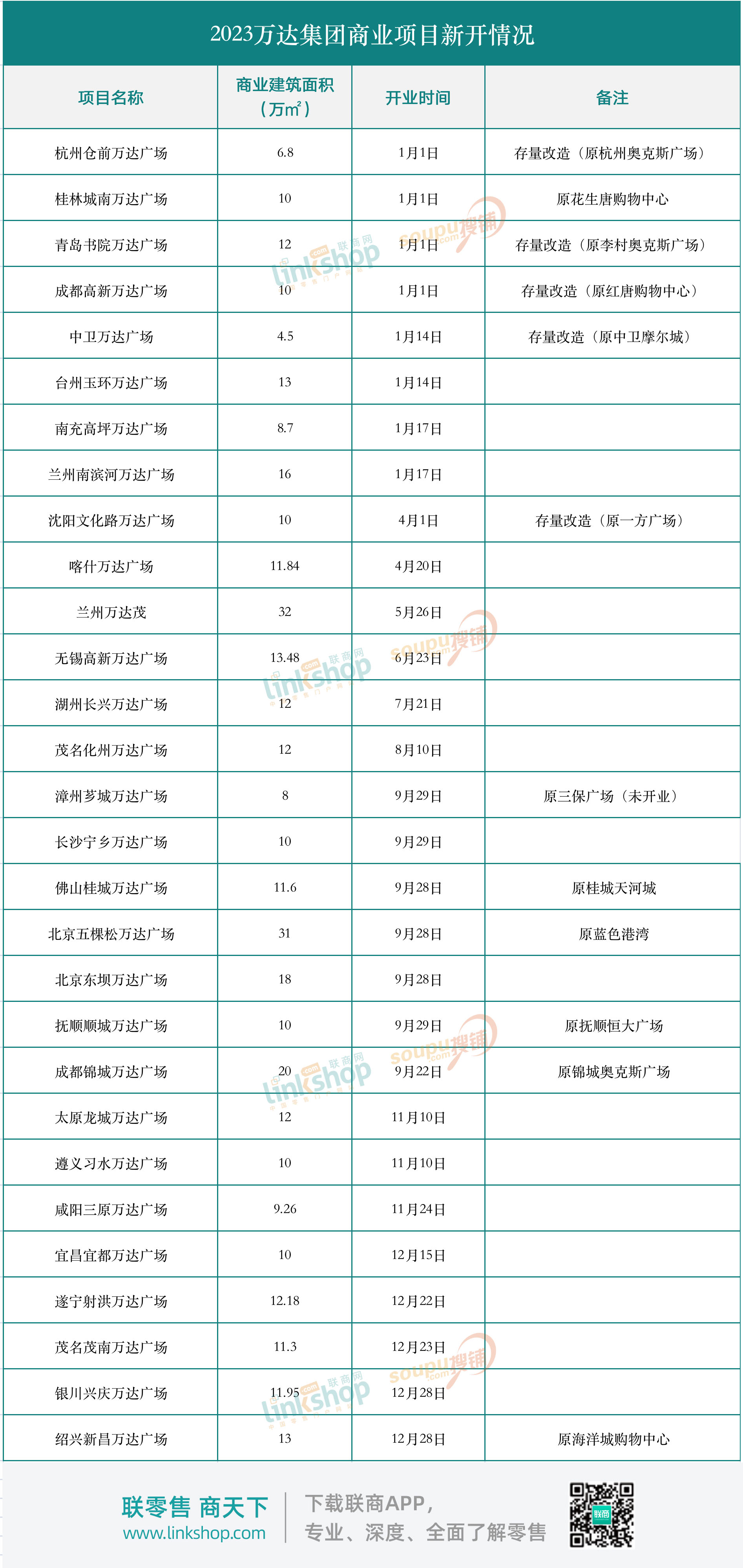 據(jù)《聯(lián)商網(wǎng)》統(tǒng)計,2023年萬達在全國新開了29座商業(yè)項目,包括28座萬達廣場、1座萬達茂。這其中主要以輕資產(chǎn)項目為主,比如集中收購的奧克斯廣場和花生唐購物中心資產(chǎn)包。