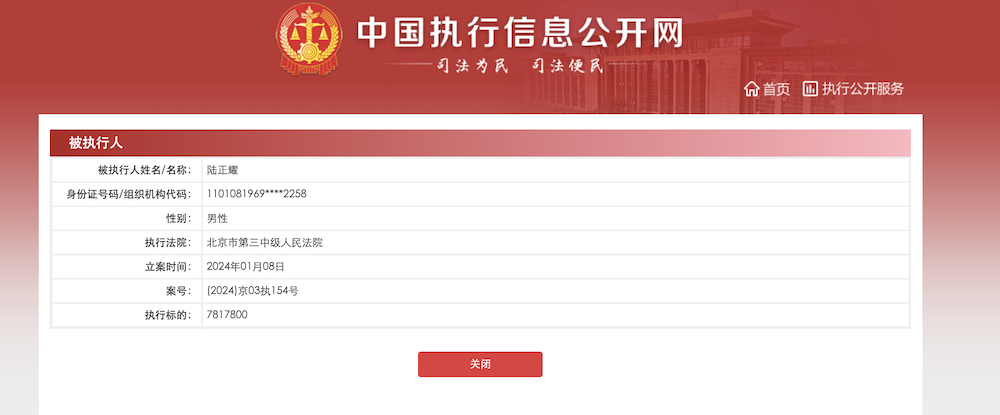 陸正耀新增被執(zhí)行781萬