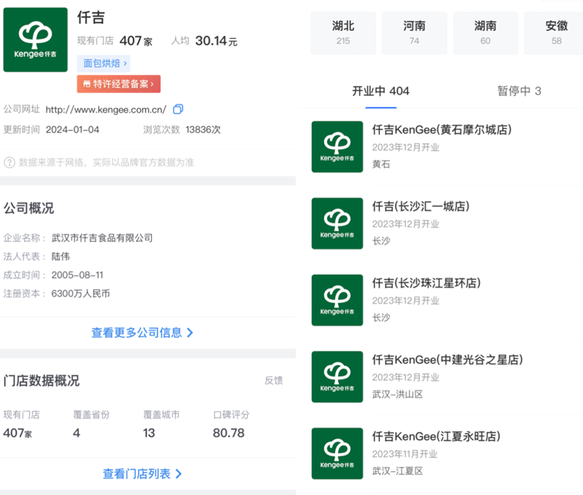 事實上,仟吉并不是沒有嘗試過走出四省,但結果并不好。仟吉曾在河北石家莊和廣西南寧開設門店,但最終都紛紛倒閉,停止經營。