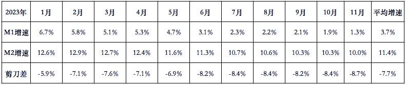 若再結(jié)合全年貨幣情況則可發(fā)現(xiàn):貨幣供應是極為充足的,且始終處于歷史高位,換言之持續(xù)在“大放水”。如此則形成了一組異常鮮明且好似對經(jīng)濟學原理不斷背離的數(shù)據(jù):一邊貨幣充足供應、另一邊物價卻不斷走低,且M1與M2的剪刀差持續(xù)擴大,這或反映出一個大概率事實:不是沒錢了,而是愈發(fā)不敢花錢了(預期愈發(fā)普遍悲觀)。