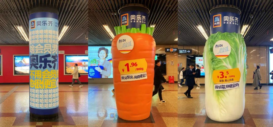 (奧樂齊在地鐵站投放的廣告牌/ 《DT商業(yè)觀察》拍攝)