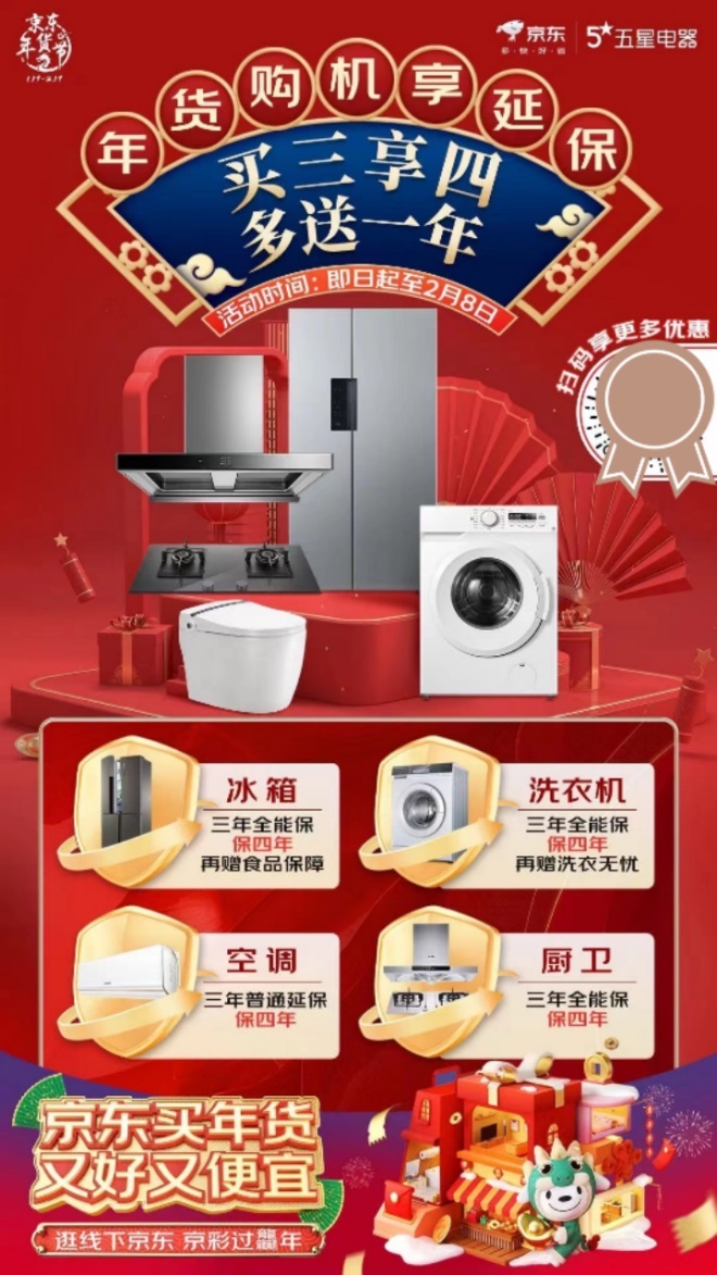 為讓消費(fèi)者買得放心,京東五星電器年貨節(jié)售后服務(wù)也都悉數(shù)安排到位,不僅有30天全品類價(jià)格保護(hù)服務(wù),早買早享受,買貴就退差價(jià),更有冰箱三年全能保,保四年再贈(zèng)食品保障、洗衣機(jī)三年全能保四年贈(zèng)洗衣無憂等等優(yōu)質(zhì)延保服務(wù)保障,任性“買買買”不怕后顧之憂。