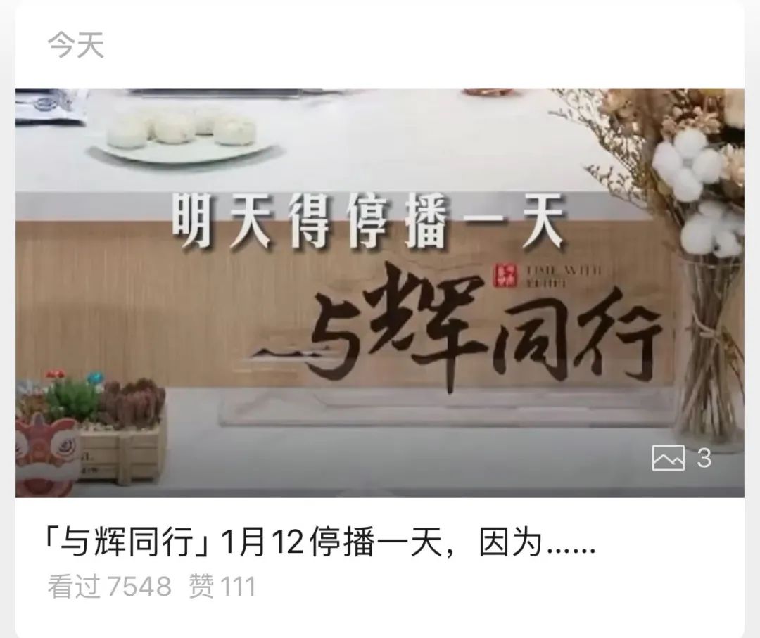 “丈母娘”把與輝同行直播間買空了。1月12日,與輝同行公眾號發(fā)文稱,停播一天,因為沒東西賣了。