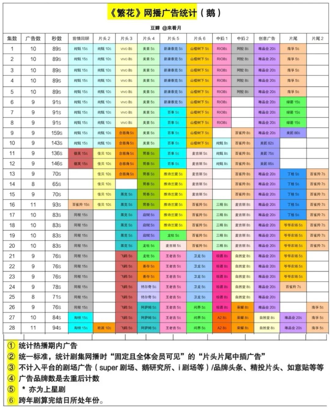 劇中出現(xiàn)的多達(dá)40個品牌,也再次引起業(yè)界對廣告植入的討論。據(jù)一位豆瓣用戶“來看月”統(tǒng)計,《繁花》中廣告數(shù)最高的一集出現(xiàn)了11個品牌,其中化妝品品牌有雅詩蘭黛、百雀羚、自然堂、美素和麥吉麗5個。