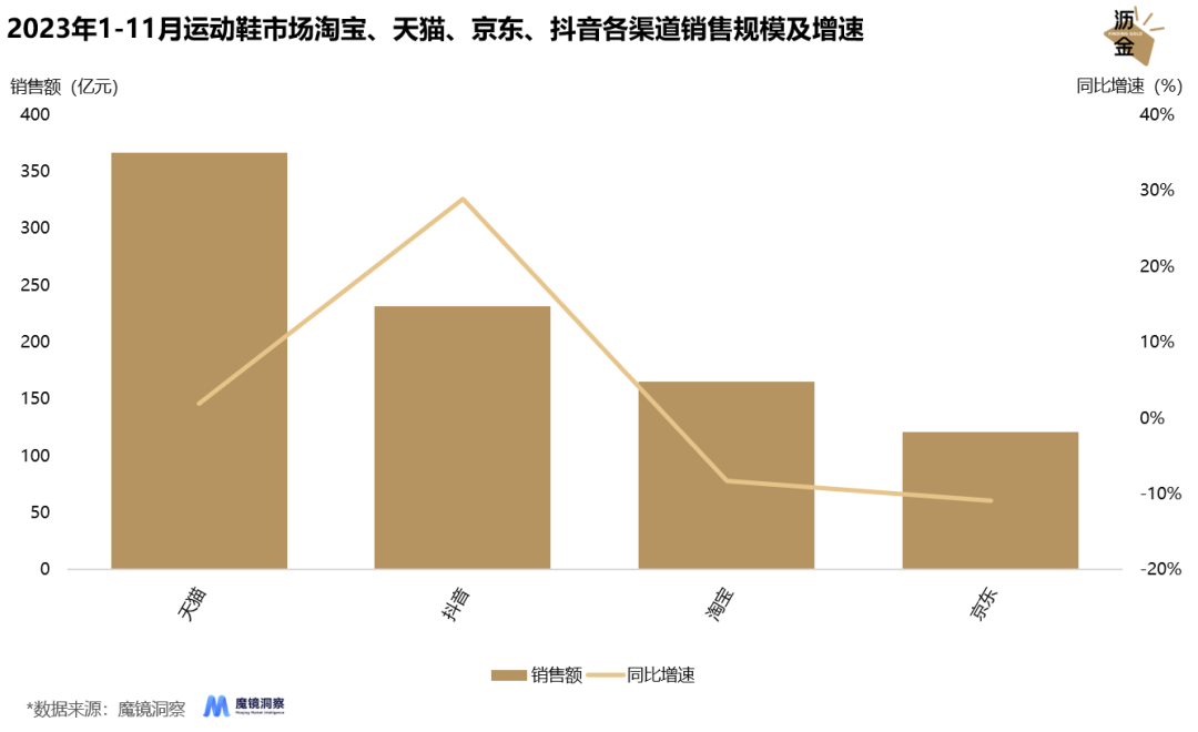 22年-23年11月淘寶、天貓、京東、抖音運(yùn)動(dòng)鞋市場(chǎng)銷售走勢(shì)