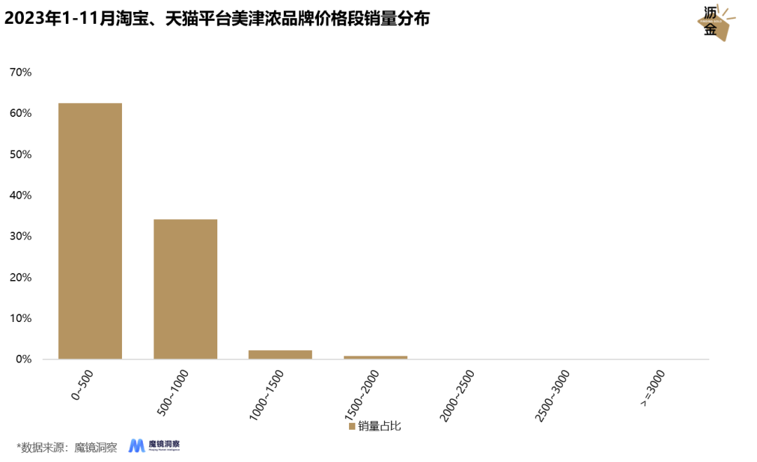 23年1-11月淘寶、天貓平臺(tái)美津濃品牌價(jià)格段銷量分布