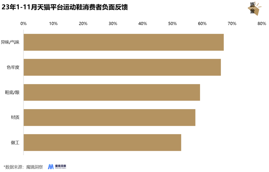 23年1-11月天貓平運(yùn)動(dòng)鞋消費(fèi)者負(fù)面反饋