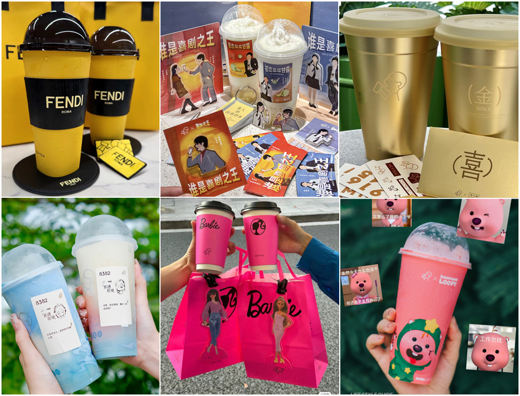 另外,喜茶也積極擁抱各領(lǐng)域品牌,打破次元壁、跨界營銷,讓多款產(chǎn)品上新即爆品。