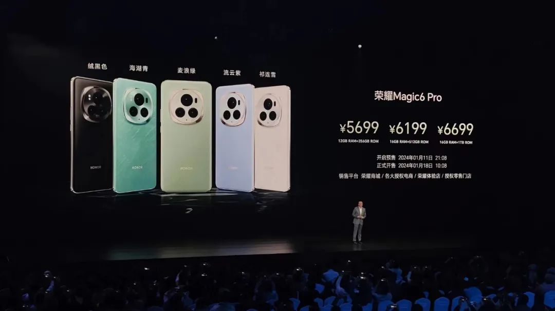 到了正式發(fā)布會,榮耀特意安排了兩場:1月10日主講MagicOS 8.0的任意門交互和自研70億參數(shù)的端側(cè)大模型——“魔法大模型”。1月11日,發(fā)布會現(xiàn)場將之前預(yù)熱過的Magic6系列六大核心功能做了重點展示,并公布了產(chǎn)品的最終價格。