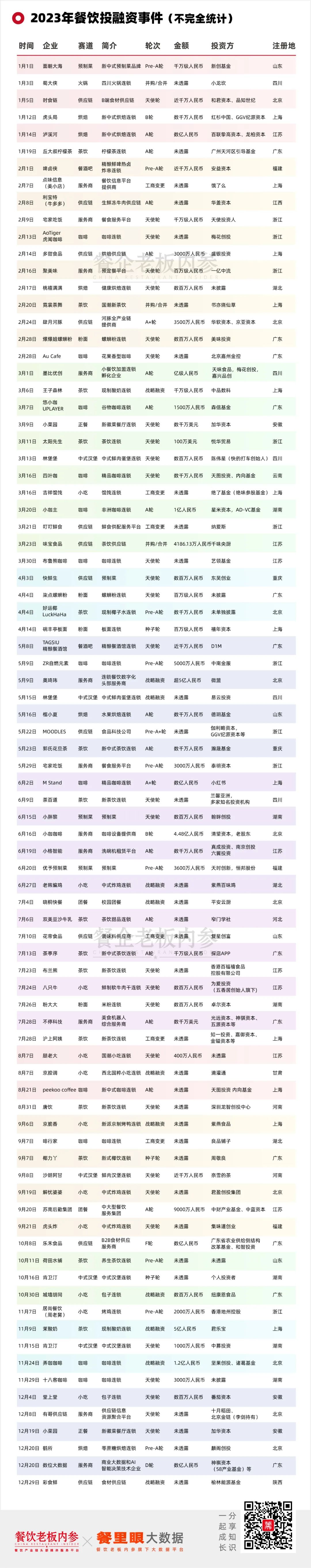 據(jù)餐里眼數(shù)據(jù)研究院多渠道不完全統(tǒng)計,2023年全年餐飲行業(yè)融資事件共132起。