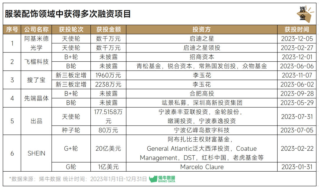 服裝配飾領(lǐng)域中獲得多次融資的項(xiàng)目