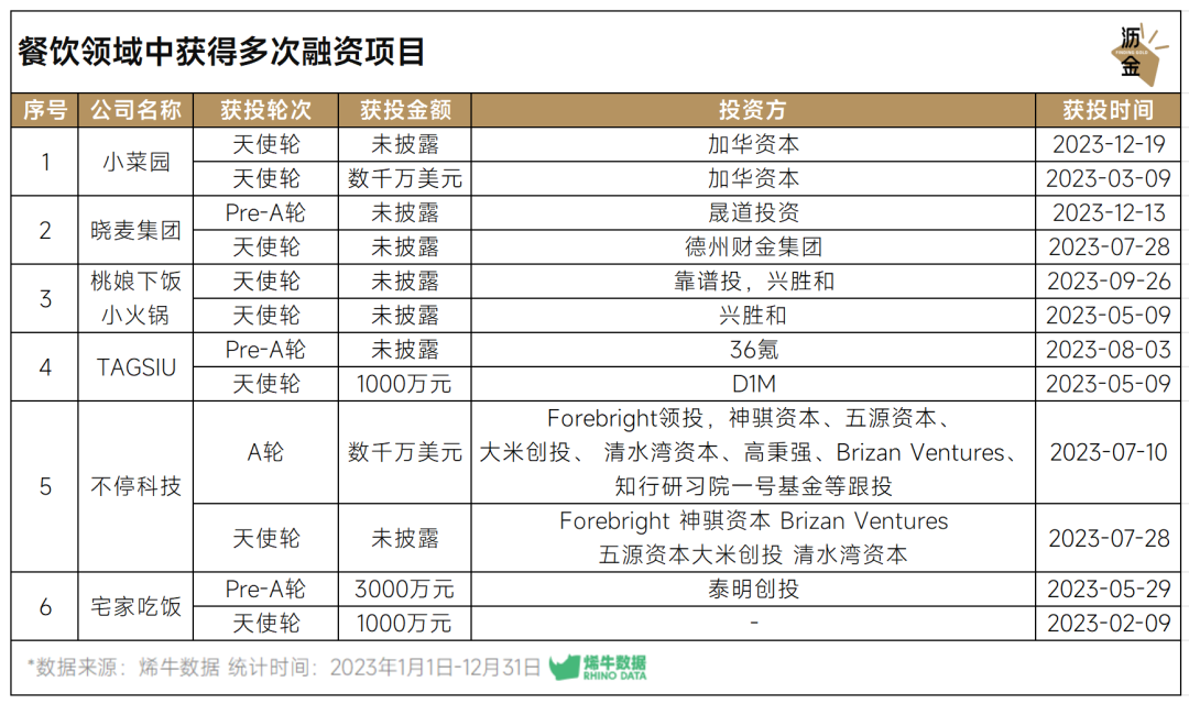 餐飲領(lǐng)域中獲得多次融資的項(xiàng)目