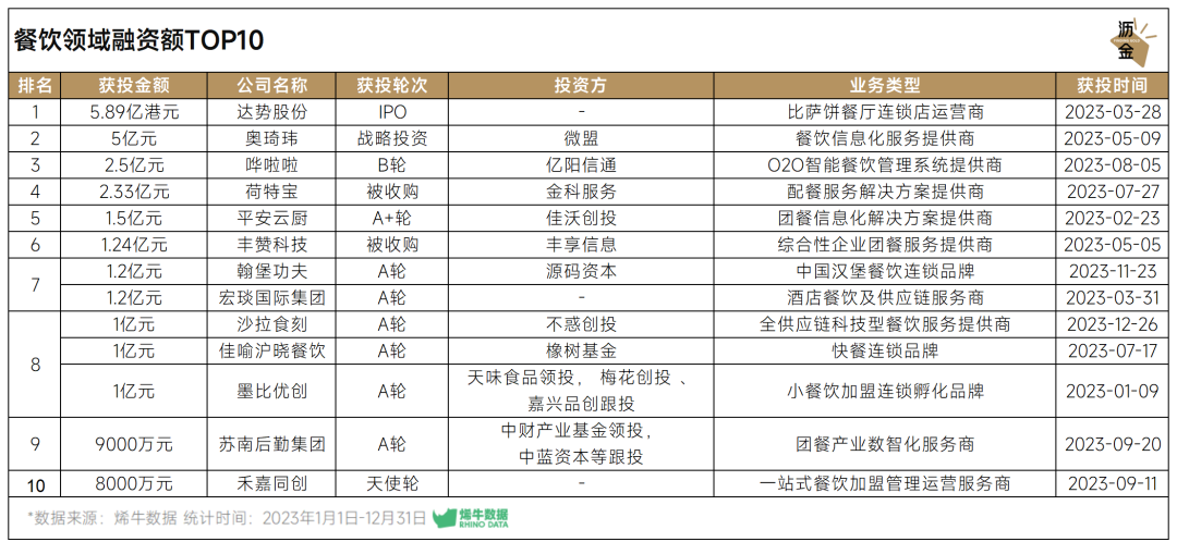 2023年的咖啡融資仍未熄火,在咖啡茶飲領(lǐng)域融資額TOP10里占比過(guò)半,且咖啡品牌在不斷做加法,果咖、茶咖、咖啡 烘焙等融合其他元素的品牌易拿到投資。而茶飲賽道中,新式茶飲品牌“茶百道”以10億元大額戰(zhàn)略投資位居榜首。