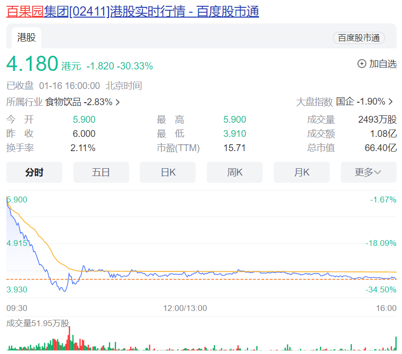 1月16日,百果園集團(tuán)(02411.HK)上市剛滿一周年,但對于該公司的投資者來說,卻是痛苦的一天。