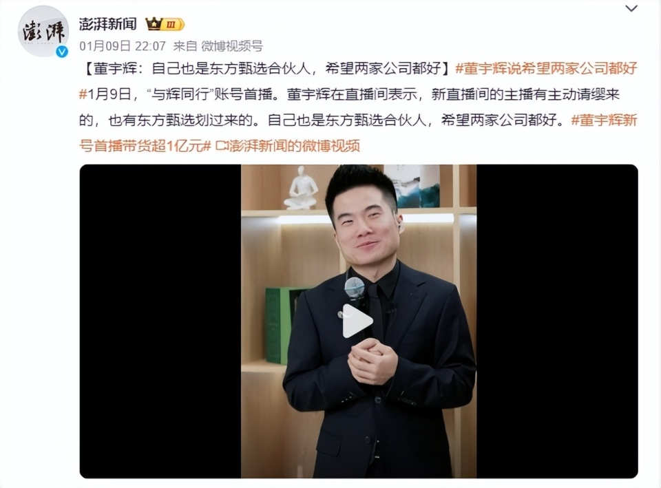 董宇輝曾表示,“與輝同行是東方甄選探索新業(yè)務(wù)的直播間。我現(xiàn)在是‘東方甄選’合伙人,我希望兩家公司都好!