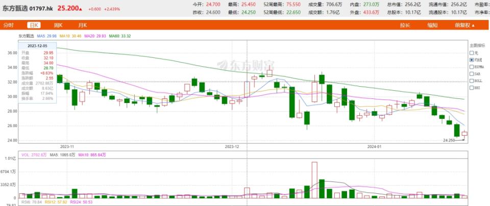 從去年12月5日董宇輝“小作文事件”發(fā)酵算起,至今已經(jīng)兩個月有余,但東方甄選仍要收拾風(fēng)波之后留下的“一地雞毛”!叭そ馍虡I(yè)”統(tǒng)計,從12月5日到1月18日,東方甄選(1797.HK)的股價跌去了14.7%;而1月1日至15日期間,東方甄選抖音號粉絲量連續(xù)負(fù)增長,半個月掉粉18.1萬。
