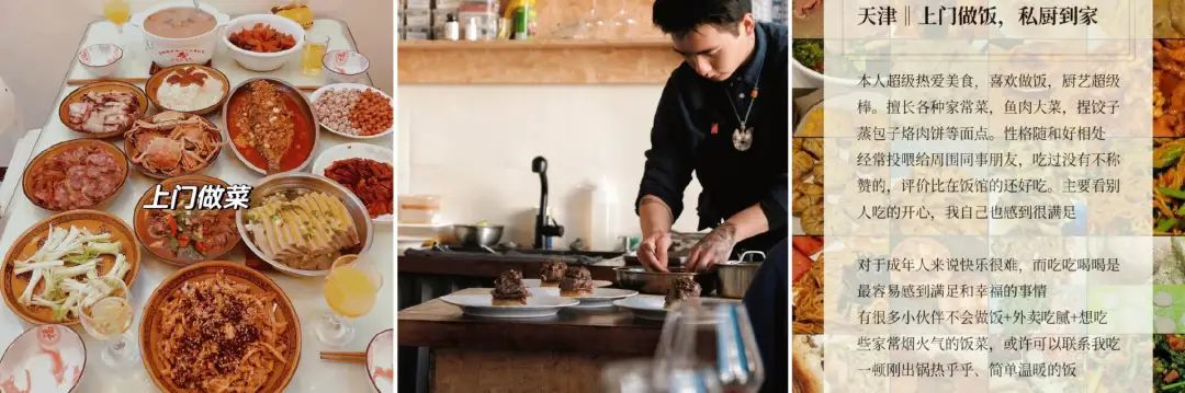 此外,值得注意的是私廚上門做年夜飯的現(xiàn)象有所增加,有研究美食的個(gè)體以及專業(yè)廚師團(tuán)隊(duì)在社交平臺自薦,表示可以預(yù)約和提供上門做飯的服務(wù)。此前有媒體報(bào)道中,上海有人花費(fèi)超萬元預(yù)約私廚上門為家人制作年夜飯。一位“北京私廚上門”的廚師稱年夜飯工費(fèi)標(biāo)準(zhǔn),6人以下是1500元,6人以上收取2000元,除夕下午上門提前來備餐。