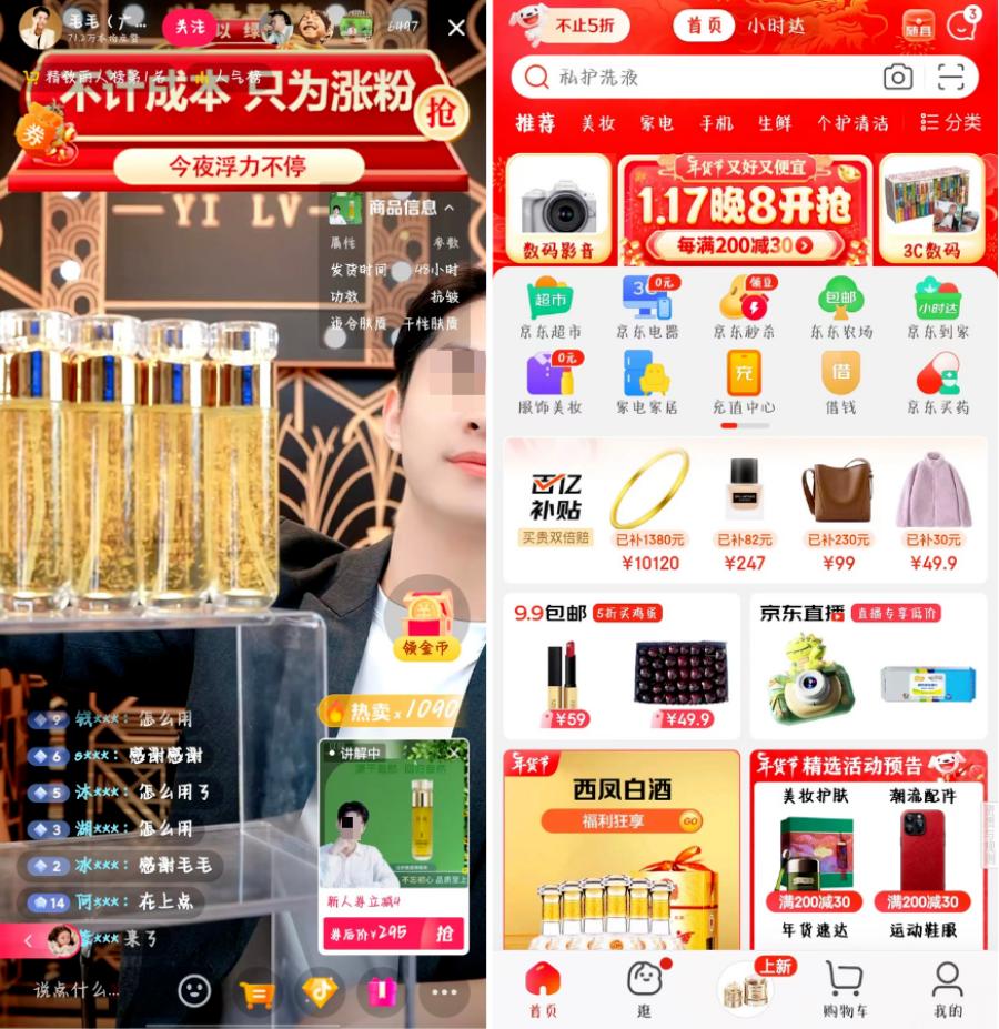 左:興趣電商(抖音) 右:貨架電商(京東)