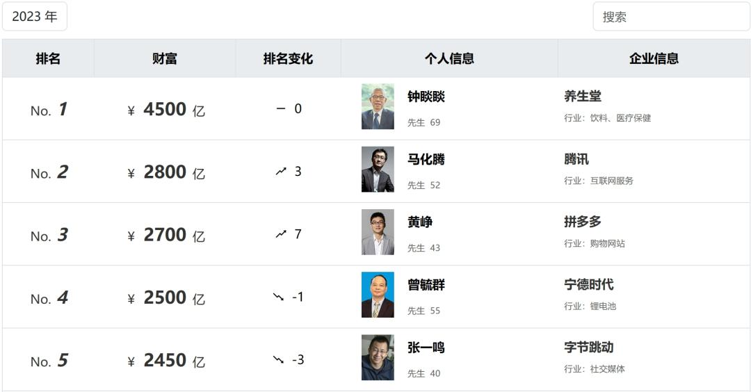 去年10月,農夫山泉董事長鐘睒睒以4500億資產連續(xù)三次蟬聯(lián)“胡潤百富榜”榜首,而字節(jié)跳動創(chuàng)始人張一鳴則以2450億財富位列國內富豪榜第五。