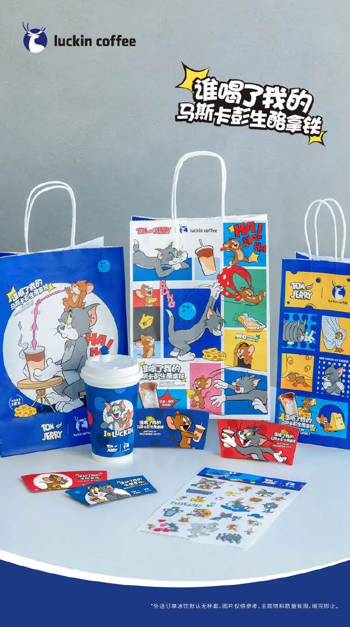到了10月份,瑞幸咖啡再次推出聯(lián)名咖啡“馬斯卡彭生酪拿鐵”,和經(jīng)典動畫IP“貓和老鼠”聯(lián)名,聯(lián)名款一出,就登上了微博熱搜。只要9.9就能拿下你的“青春回憶”,聯(lián)名貼紙、杯套、紙袋,激發(fā)了消費者的收集欲望和二創(chuàng)熱情,紛紛被改造正立體書、票夾等。